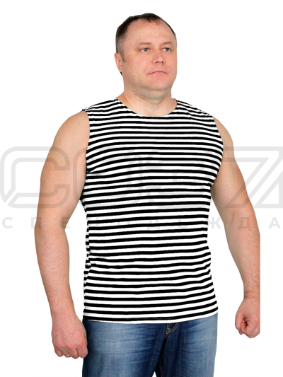 Майка-тельняшка с широким плечом, чёрная полоса.