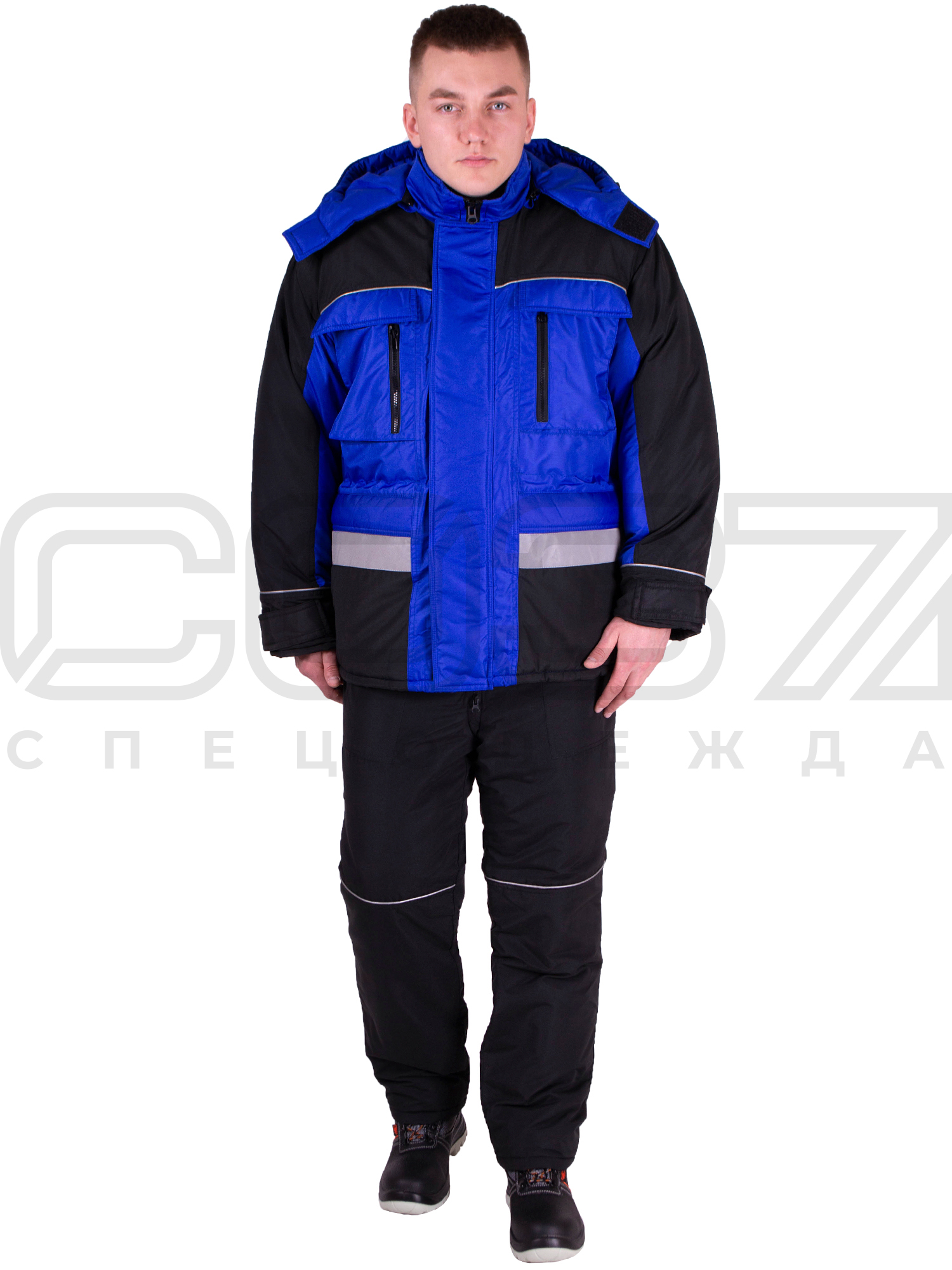 Куртка рабочая зимняя "Импульс" с СОП цв.василёк/чёрный IV и Особый кл.пояс в Туле